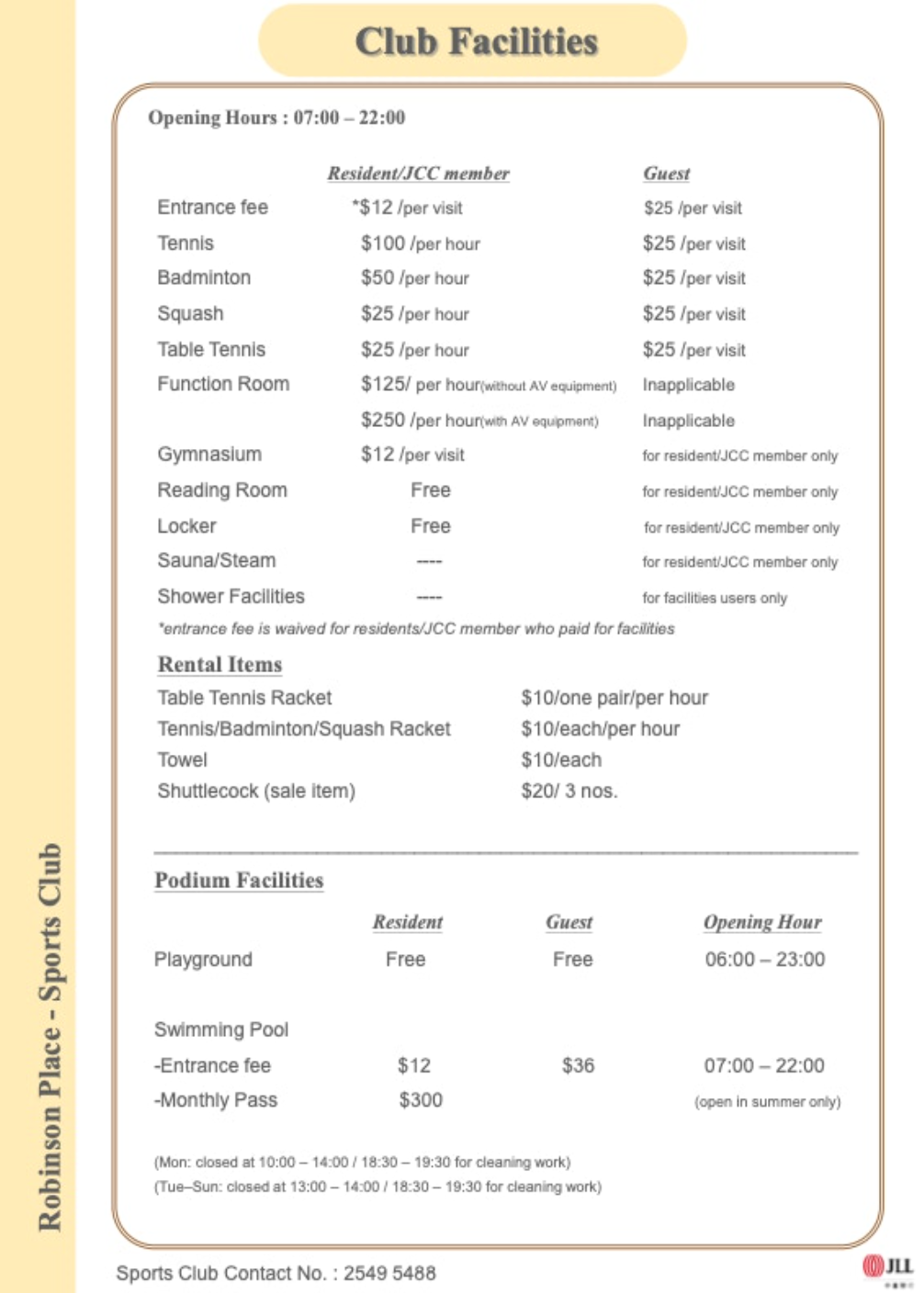 The sports club is managed by JLL Hong Kong
