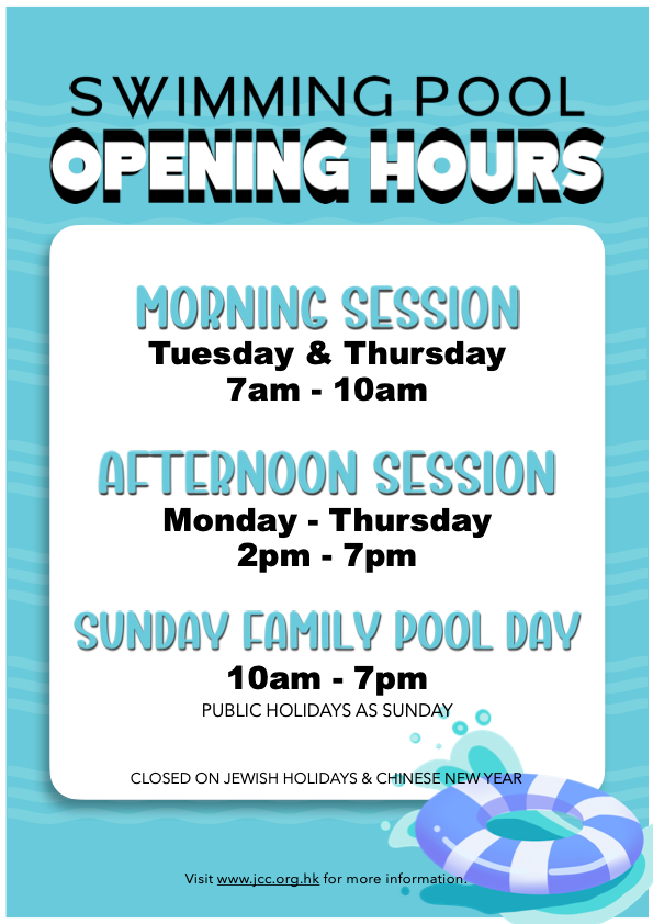 The JCC Swimming pool features two swimming lanes & an area for leisure swimming. The pool is heated throughout the year & is open to all JCC members & accompanied guests. Overseas visitors may also use the JCC pool for a small fee.