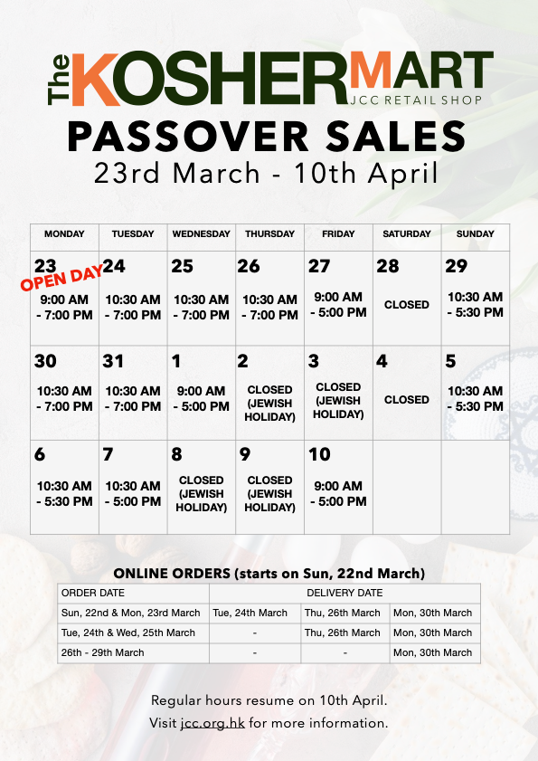 PASSOVER FOOD COLLECTION 2026 from Sunday 22nd March (PM) delivery on Tuesday 24th...